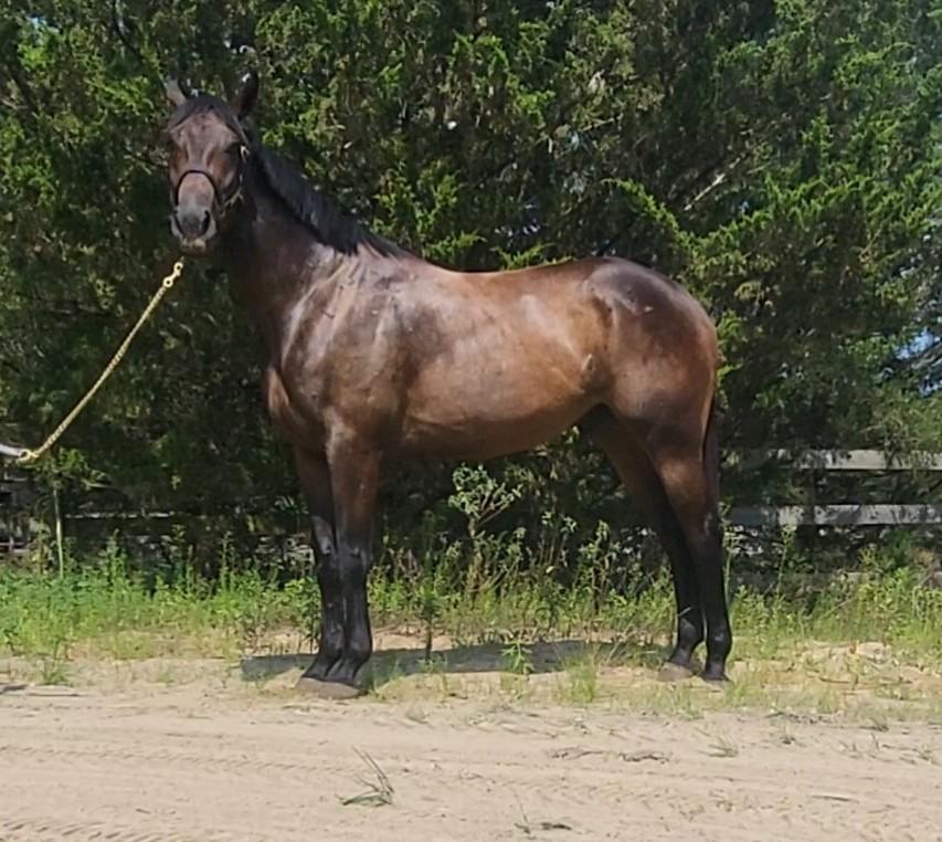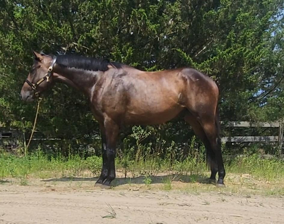 Broken Bond is over this whole vacation deal. He never made it to the races because he just couldn’t seem to lose that baby fat.  Turns out he was just a slower developer!  He’s gotten leaner but has maintained a somewhat stocky build.  He is a handsome, sweet and affectionate. He loves to follow you around the field even leaving his hay and buddy standing at the gate.  He is looking to start his career with his new partner and has good feet and is an easy type keeper. And wait until you see those dapples in the spring – a real attention getter!
