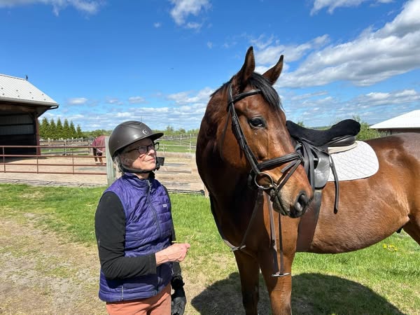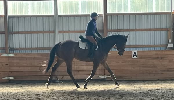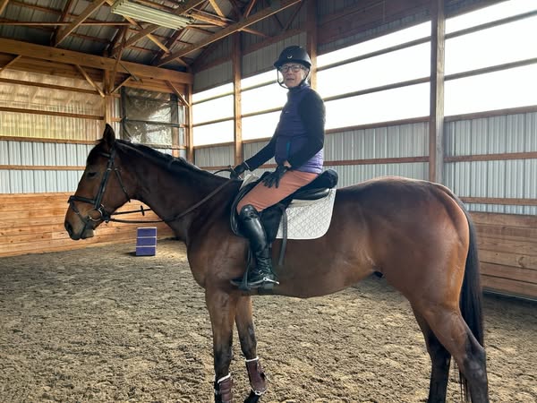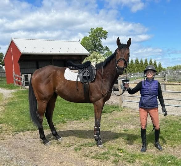 Congratulations to this perfect pair! Kathy took one look at Different Flame in the field and seemed to see all his potential instantly while looking for her next forever horse to continue competing jumpers with. Sometimes horses have a way of inadvertently showing off their hidden talent. While still at the farm Flame’s paddock pals had been adopted and had left him the place to himself. He quickly showed his disapproval of a new buddy and his hidden talent by jumping out of the paddock, clearing a 4 1/2 gate with ease! After that he did find a more suitable buddy until Kathy made her decision at which time we shared the story. I believe her response was “I knew it”. Can’t wait to see this team develop that talent!