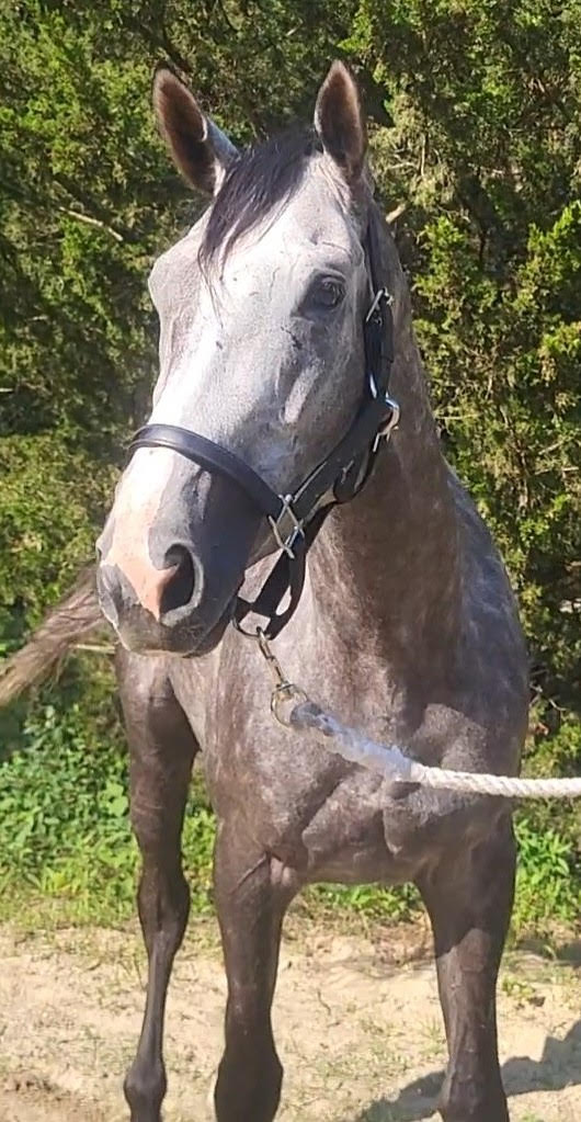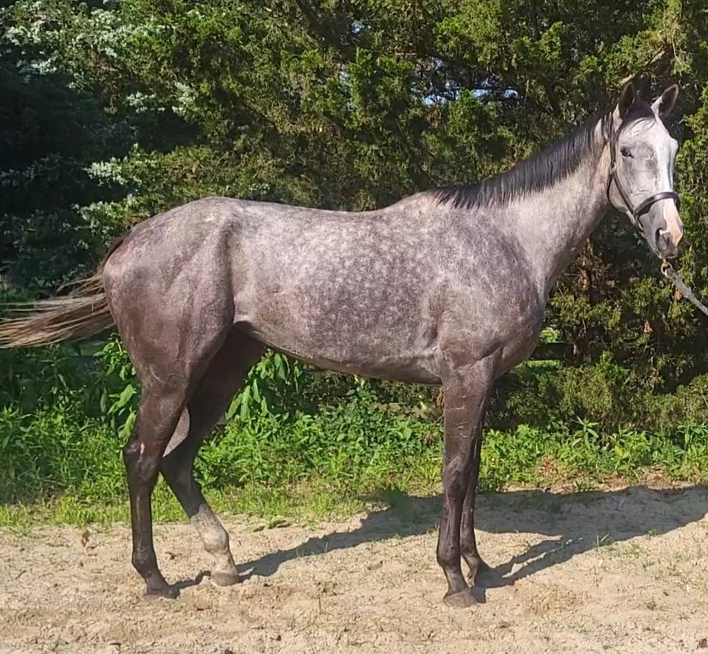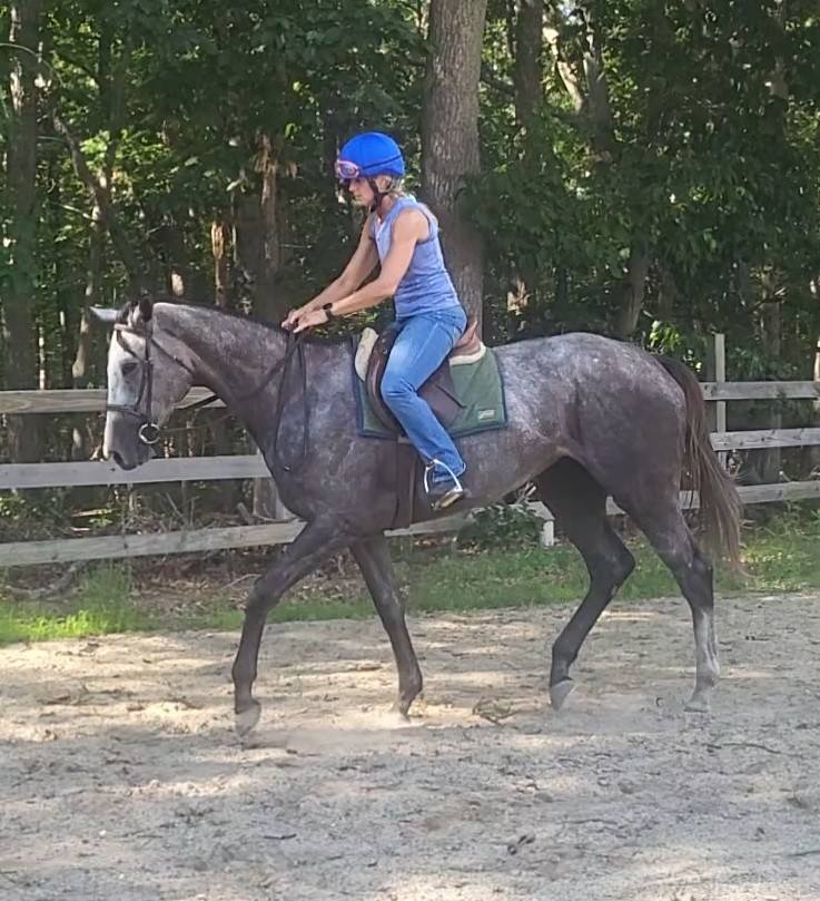 While our trainer is currently laid up, another trainer did have a opening in her schedule to take her for a first post-track ride. She described her as soft, willing, quiet and a bit lazy. What a surprise! This girl rode around the ring like she had been ridden for years. After a few times around the ring, Lady wanted to naturally drop her head and putter around. Standing 16 hands with room to grow and fill out, she’s already a beauty but will certainly be a stunner as she matures. She would make a lovely hunter pleasure type and a fantastic partner for anyone who enjoys a laid back lady.