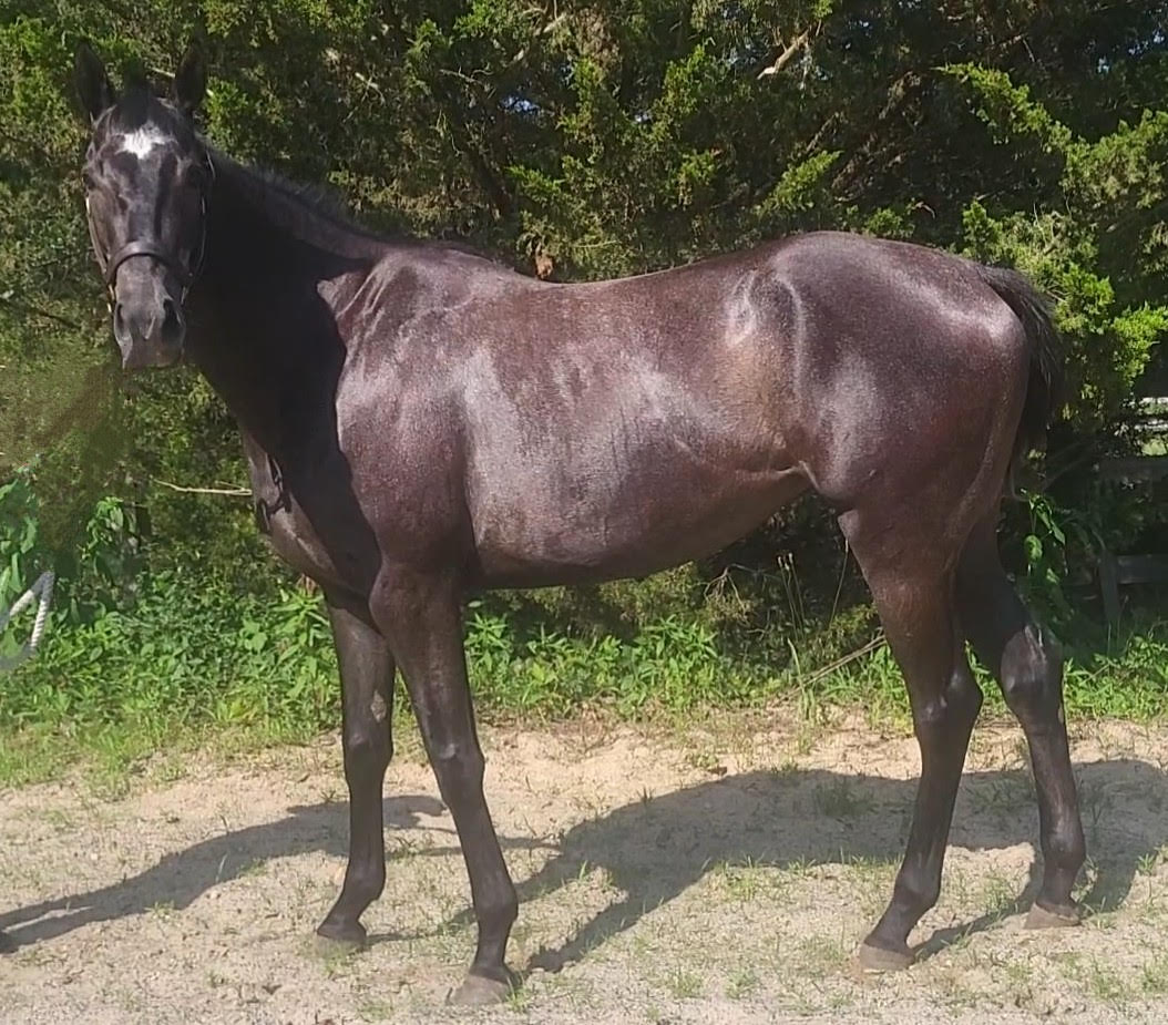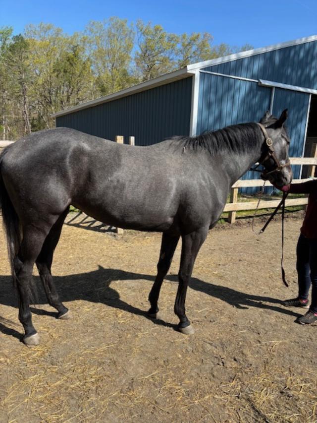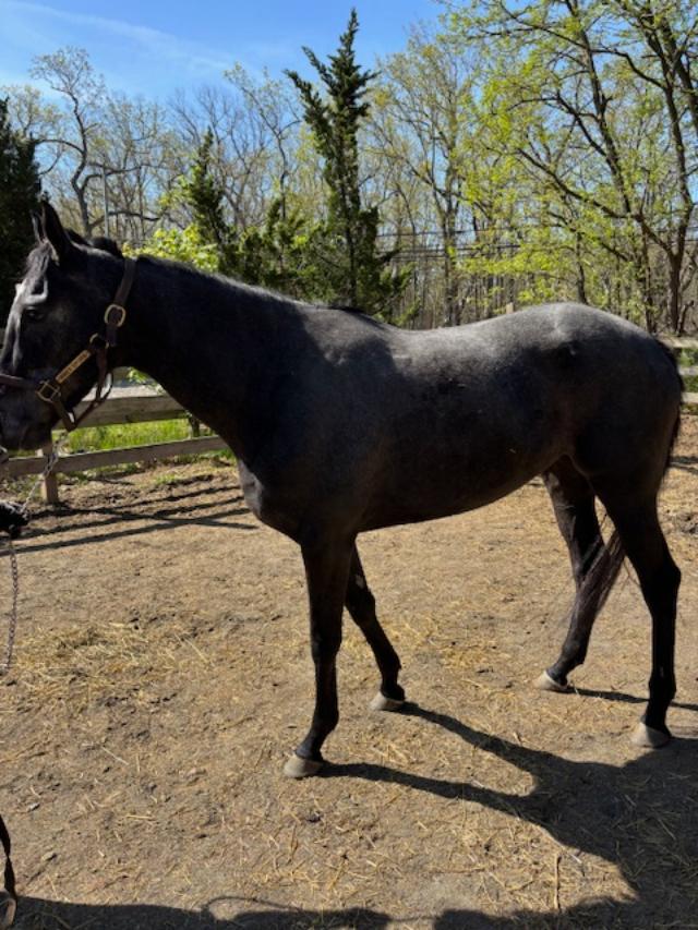 Millie’s Escape! Just got her dancing shoes on and is waiting for her lead. Due to our trainer’s layup, she has been on vacation but eagerly awaits her next job. She briefly trained to attempt a racing career but luckily, she trained under a very observant and caring trainer who noticed a bit of a profile developing in one tendon. That was enough for him to decide it was not worth pushing the subject because he knew she would be a wonderful mount for off the track sport. The profile quickly tightened up and this girl is growing into a stout, 16 hand bright girl. Very social, always looking for attention, she is a pretty mover and is ready to pursue any sport!