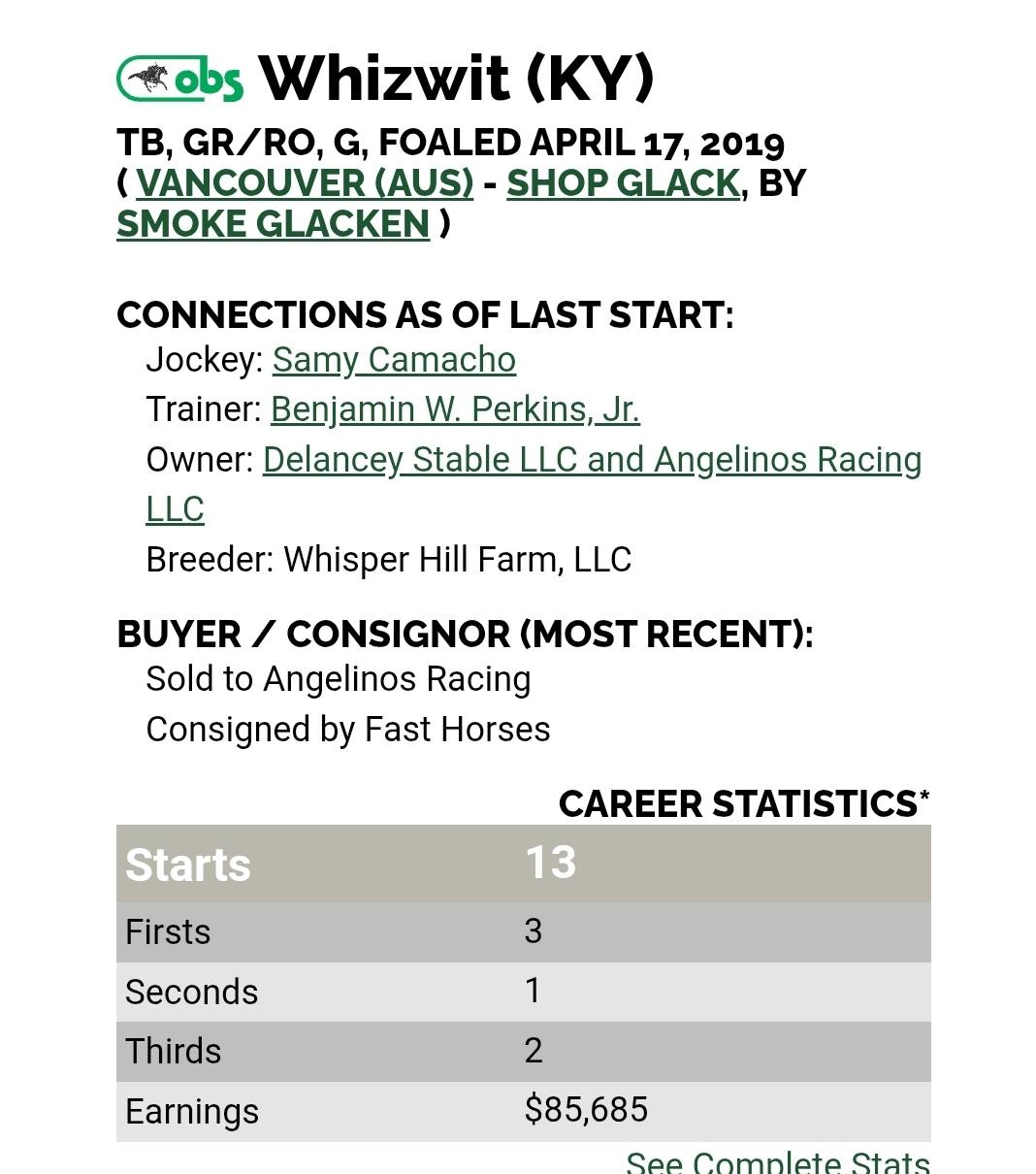 TB, GR/RO, G, foaled April 17, 2019 in Kentucky