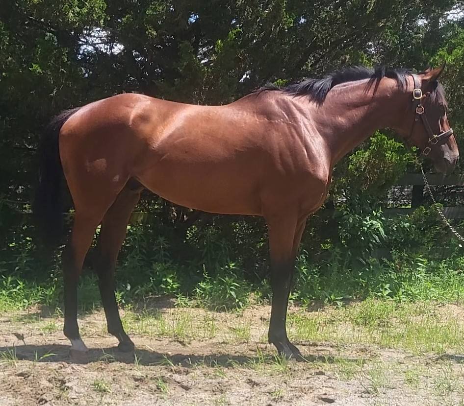 Need something short and sweet? Yono is your guy. Standing 15’2, he’s got a typey face and a really nice build. This guy comes off the track sound after getting bored with running in circles. He is smart and walks to the gate when he sees you coming. He has this “pick me” look that tells me he cannot wait to learn his new job. Correctly put together and willing, I think this guy will step into any new discipline with plenty of enthusiasm and pick up on it quickly.
